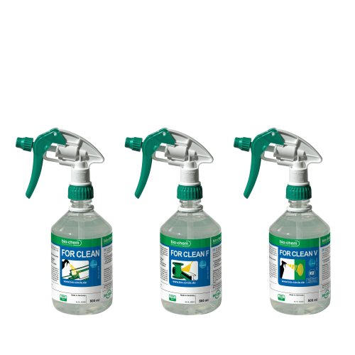 Čistiace prostriedky vyrobené z obnoviteľných surovín podstatne znížujú negatívny vplyv na životné prostredie. Pri vývoji čistiacich prostriedkov FOR CLEAN bola venovaná pozornosť tomu, aby boli vhodné aj pre potravinársky priemysel. Čistiaci prostriedok FOR CLEAN V má certifikát NSF, takže môže byť bez akýchkoľvek problémov použitý v priemyselných kuchyniach, pri spracovaní mäsa, ale aj v pekárňach.
